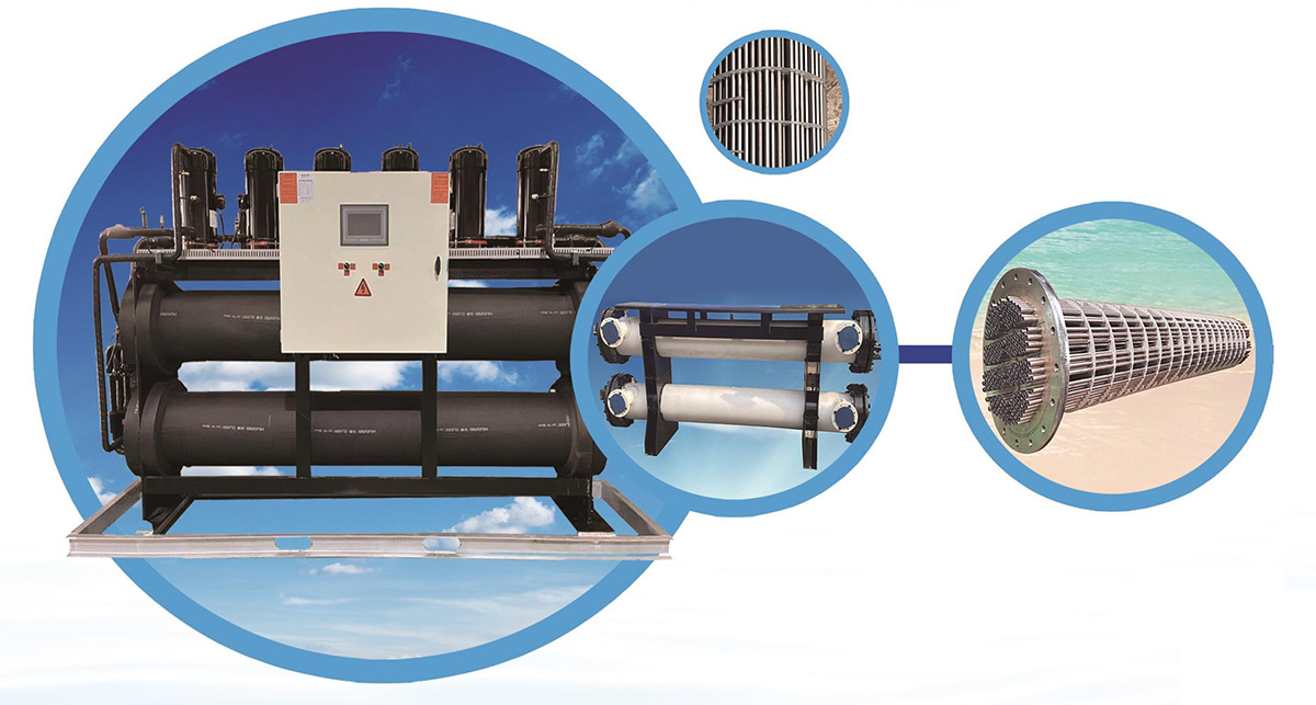 采用直条换热管和弓形折流板方式,大大的提高了换热器的换热效率,提高整机性能有效的排除了水流死角,实现了水流的*优水阻和*优换热,充分地实现了水与冷媒的热交换。
